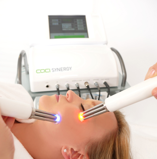 The new CACI Synergy system combines the functionality of two best-selling systems, the CACI Ultra and the CACI Ultimate and introduces pioneering S.P.E.D™ microcurrent LED technology, a breakthrough new advancement in microcurrent therapy, orbital dermabrasion, ultrasonic peeling and CACI’s unique Wrinkle Comb (a non-invasive alternative to dermal fillers)- a complete range of anti-ageing and skin rejuvenation solutions using just one advanced treatment system.